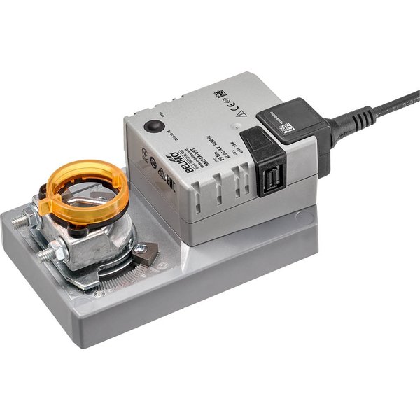 Gotowy do podłączenia siłownik obrotowy, dedykowany do pracy z aparatami VAV i CAV w instalacjach technicznych budynków. Został zaprojektowany do efektywnego sterowania przepustnicami powietrza o powierzchni dochodzącej do 4 m². Urządzenie charakteryzuje się momentem obrotowym silnika wynoszącym 20 Nm i jest zasilane napięciem znamionowym AC/DC 24 V. Sterowanie odbywa się za pośrednictwem interfejsu komunikacyjnego PP.